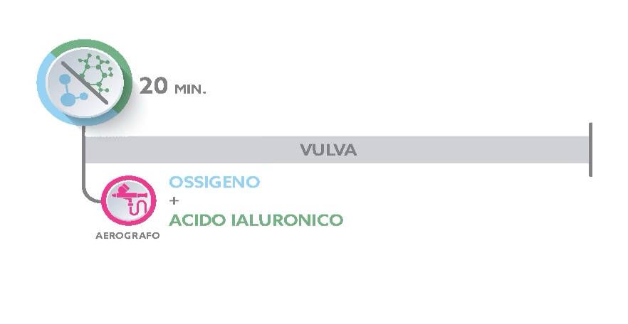 Per 20 minuti si eroga ossigneo sulla vulva tramite nebulizzazione (da effettuare a 2 mm dalla vulva) con acido ialuronico a basso peso molecolare fino a esaurimento flacone (15ml).